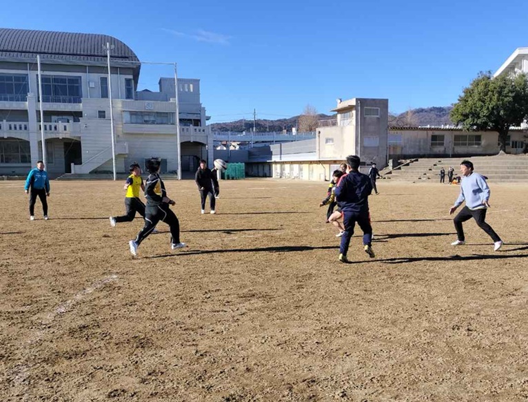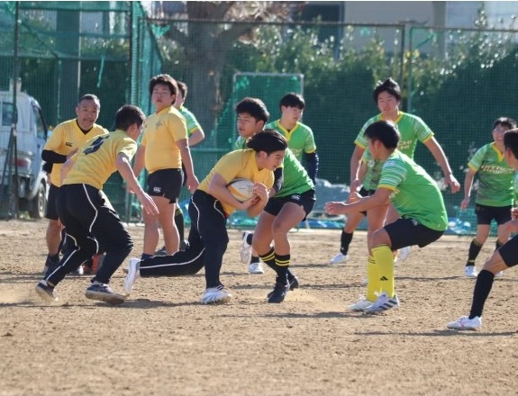 黒沢OB・OG会長と高島副顧問の年頭挨拶の後、タッチフットでウォームアップしてから、OBチームを練習台にして実戦形式のアタック&ディフェンスを行いました。