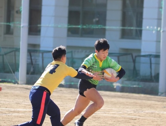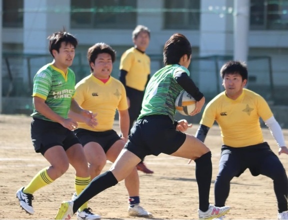 前日の雪模様から一転して雲一つない晴天に恵まれ、OB・現役が一体となって楕円球を追いました。